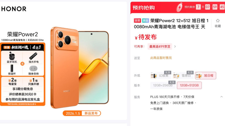 荣耀Power2正式官宣,发布时间为2026年1月5日19:30,核心卖点是10080mAh青海湖电池赫尔电梯型号王,性能方面搭载联发科天玑8500Elite。配图是该机的三款配色,相机模组给人一种很熟悉的感觉,适合对性能没有太高需求的小伙伴,官方售价也会低于前两天发布的荣耀WIN系列。