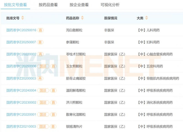 2020年以来康缘药业获批上市的中药新药(来源:米内网)