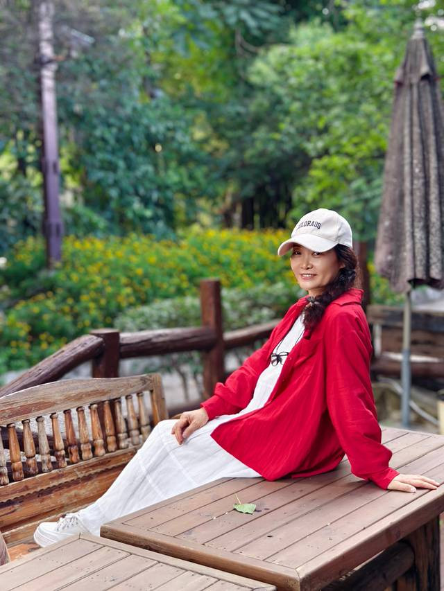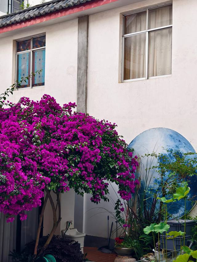 院子很美,干净明朗,墙角的三角梅开的正艳