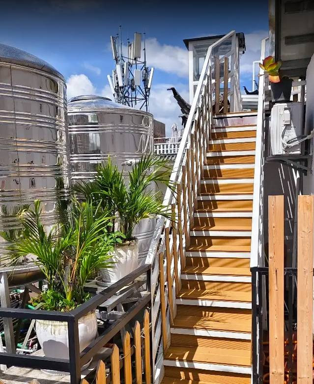 最高层配备了全景玻璃护栏,玻璃很模糊,成像效果不佳,但安全。