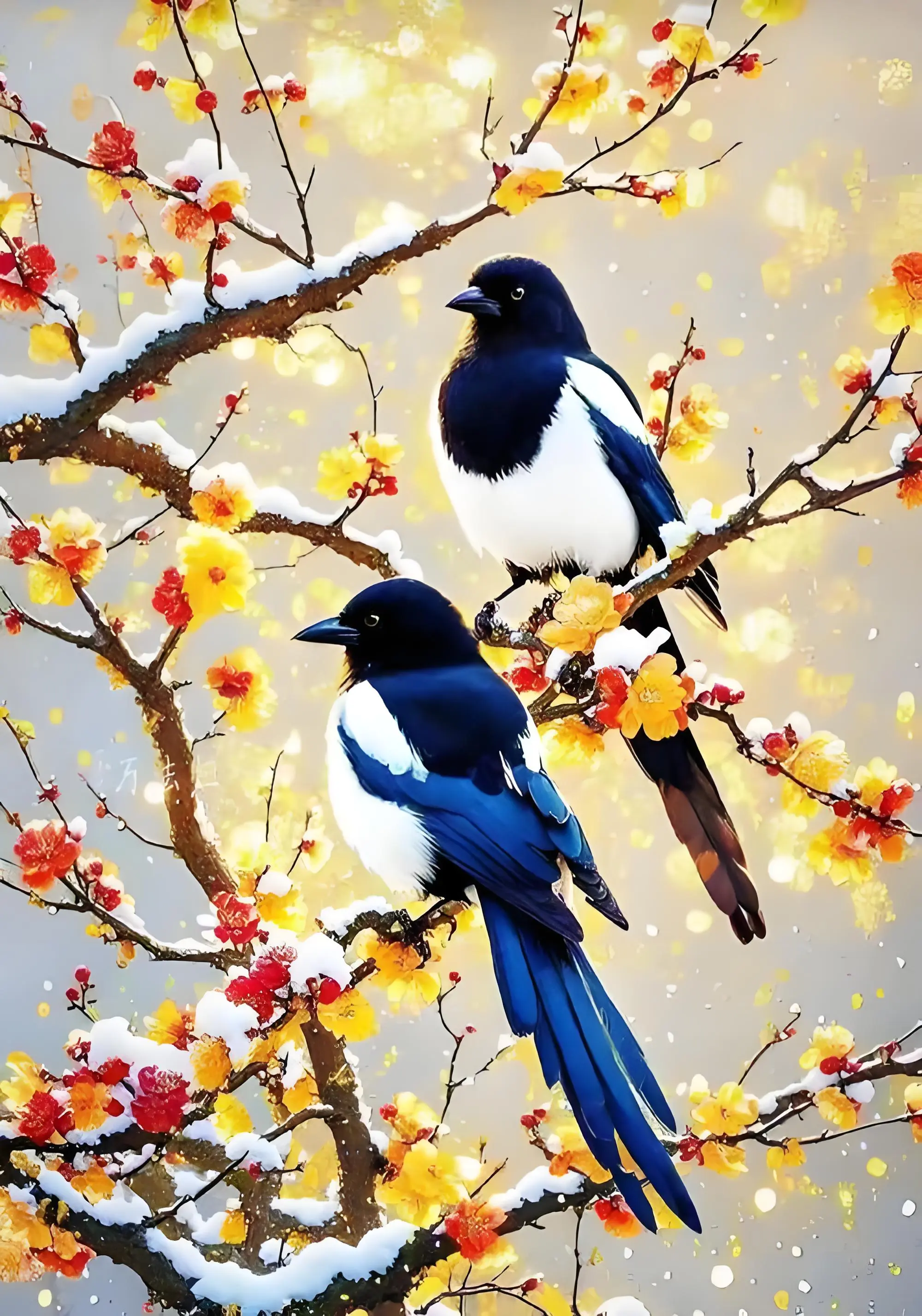 - 喜鹊:中国人最熟悉的鸟,象征着吉祥如意,“喜鹊登枝”是最常见的年画图案。但很多人觉得它太常见了,不够珍稀;